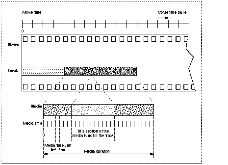 A movie can contain one or more tracks. Each track represents a single stream of data in a movie and is associated with a single media. The media has control information that refers to the actual movie data.