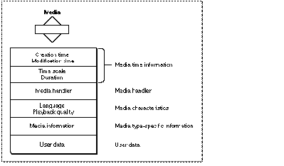 As is the case with movies and tracks, a QuickTime media is represented as a private data structure. Your application never works with individual fields in that data structure. Rather, the Movie Toolbox provides functions that allow you to work with a media's characteristics. Figure 0-21 shows the characteristics of a QuickTime media.