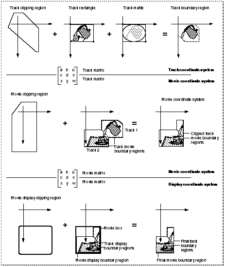 Figure 0-22 provides an overview of the entire process of gathering, transforming, and displaying visual data. Each track defines its own spatial characteristics, which are then interpreted within the context of the movie's spatial characteristics.