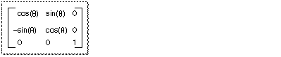 Finally, you can rotate an image by a specified angle by performing a rotation operation. You specify the magnitude and direction of the rotation by specifying factors for both x and y. The matrix shown in Figure 0-33 rotates an image counterclockwise by an angle q.