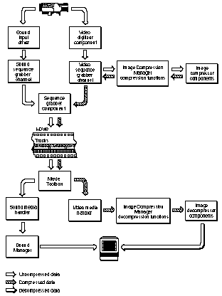 Applications that create or edit movies use more of the capabilities of the Movie Toolbox and the other managers than applications that just play movies. Figure 0-3 shows some of these other elements in an expanded view of the QuickTime architecture.