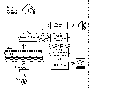Your application gains access to the capabilities of QuickTime by calling functions in the Movie Toolbox. The Movie Toolbox allows you to store, retrieve, and manipulate time-based data that is stored in QuickTime movies. A single movie may contain several types of data. For example, a movie that contains video information might include both video data and the sound data that accompanies the video.