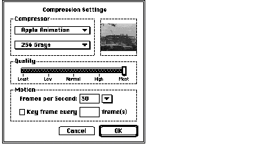 Figure 0-10 shows a dialog box that this application provides to allow the user to select compression methods for video using the standard image-compression dialog component.