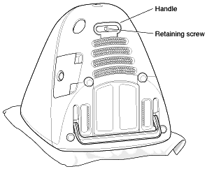 The bottom cover is held in place by a retaining screw located on the bottom cover and accessible through the opening in the handle. After removing the screw, the user can remove the cover by pulling up and out on the handle.