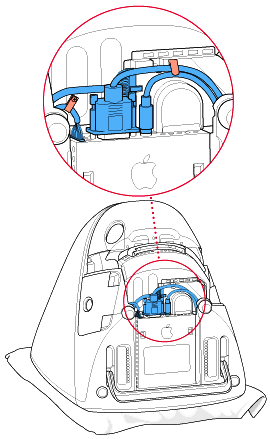 While removing and reinstalling the logic board assembly, you should take care to align the door of the CD drive with the opening in the front of the case.