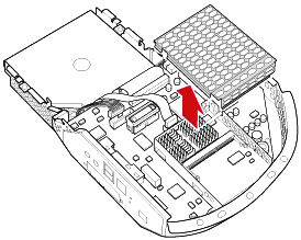 Once the logic board assembly is free of the case, you can see the EMI shield, which covers the processor module. To gain access to the main RAM expansion slots, you must remove the EMI shield, as shown in Figure 4-5 .