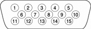 The connector for the video monitor is a three-row DB-9/15 (also called mini sub D15) connector for use with a VGA, SVGA, or XGA monitor. Figure 3-5 shows the pin configuration and Table 3-6 lists the signal pin assignments. Figure 3-5 Analog monitor connector