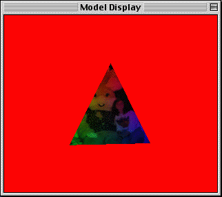 A single textured triangle with red, green, and blue diffuse colors applied to the vertices.