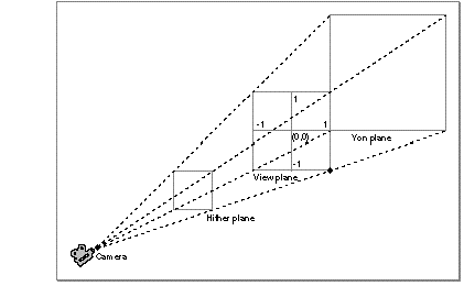 When using perspective projection, you therefore need to specify the location of the view plane. QuickDraw 3D provides two types of perspective cameras, which specify the location of the view plane in different ways. See "View Plane Cameras" and "Aspect Ratio Cameras" for complete details on these two types of perspective cameras.