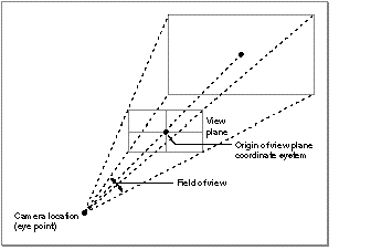 An aspect ratio camera is a type of perspective camera defined in terms of a viewing angle and a horizontal-to-vertical aspect ratio, as shown in Figure 11 . With an aspect ratio camera, you don't specify the distance to the view plane directly (as you do with a view plane camera).