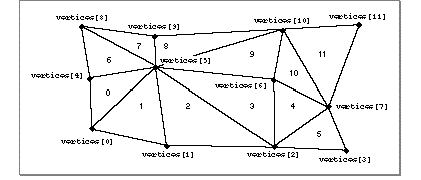 The entire trigrid can have a set of attributes. You may specify an array of attributes that apply to each facet of the trigrid. In this way, for example, you can give each facet of the trigrid a different color. In addition, any or all of the vertices can have a set of attributes.