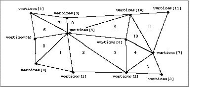 A trigrid is a grid composed of triangular facets. The triangulation should be serpentine (that is, quadrilaterals are divided into triangles in an alternating fashion) to reduce shading artifacts when using Gouraud or Phong shading. Attributes may be assigned to each vertex and to each facet of a trigrid, and also to the entire trigrid.