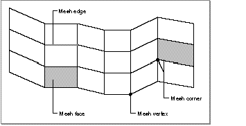 Face attribute set list (optional), vertex attribute set list (optional), mesh corners (optional), mesh edges (optional). See "Mesh Corners" , and "Mesh Edges" , for descriptions of these objects.