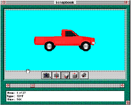 The 3D Viewer supports the Drag and Drop Manager to allow you to transfer 3DMF data between applications, the Clipboard, and the Scrapbook. The user typically initiates dragging from the viewer by dragging a special drag border that surrounds the perimeter of content area of the viewer (see Figure 9 ). The user can also always initiate a drag by holding down the Option key and dragging anywhere in the viewer content area.