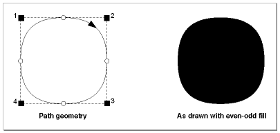 Notice that the path is filled with the even-odd shape fill, which is the default for path shapes. You could, however, specify any shape fill for this path except the open-frame shape fill. The open-frame shape fill requires that the first and last points of the contour be on-curve points, and this path has no on-curve points.